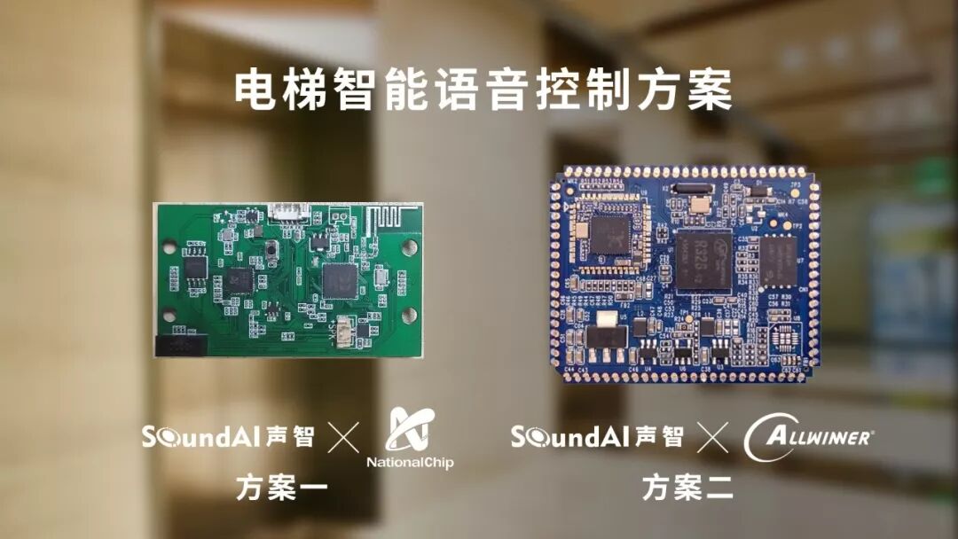 该方案基于声智与国芯联合推出SoundPi离线语音模组打造,采用国芯GX8008 AI语音处理芯片,内置声智针对电梯语音交互场景定制开发的专属算法,考虑带口罩影响声源信号采集的因素,并针对电梯封闭轿箱场景下的多径反射、混响及点击噪音干扰等难点问题进行优化。该方案采用RTOS系统,提供离线语音唤醒模式,无需联网即可实现本地语音控制,功耗成本可控,兼容多种主流的电梯设备,可以快速安装上线。