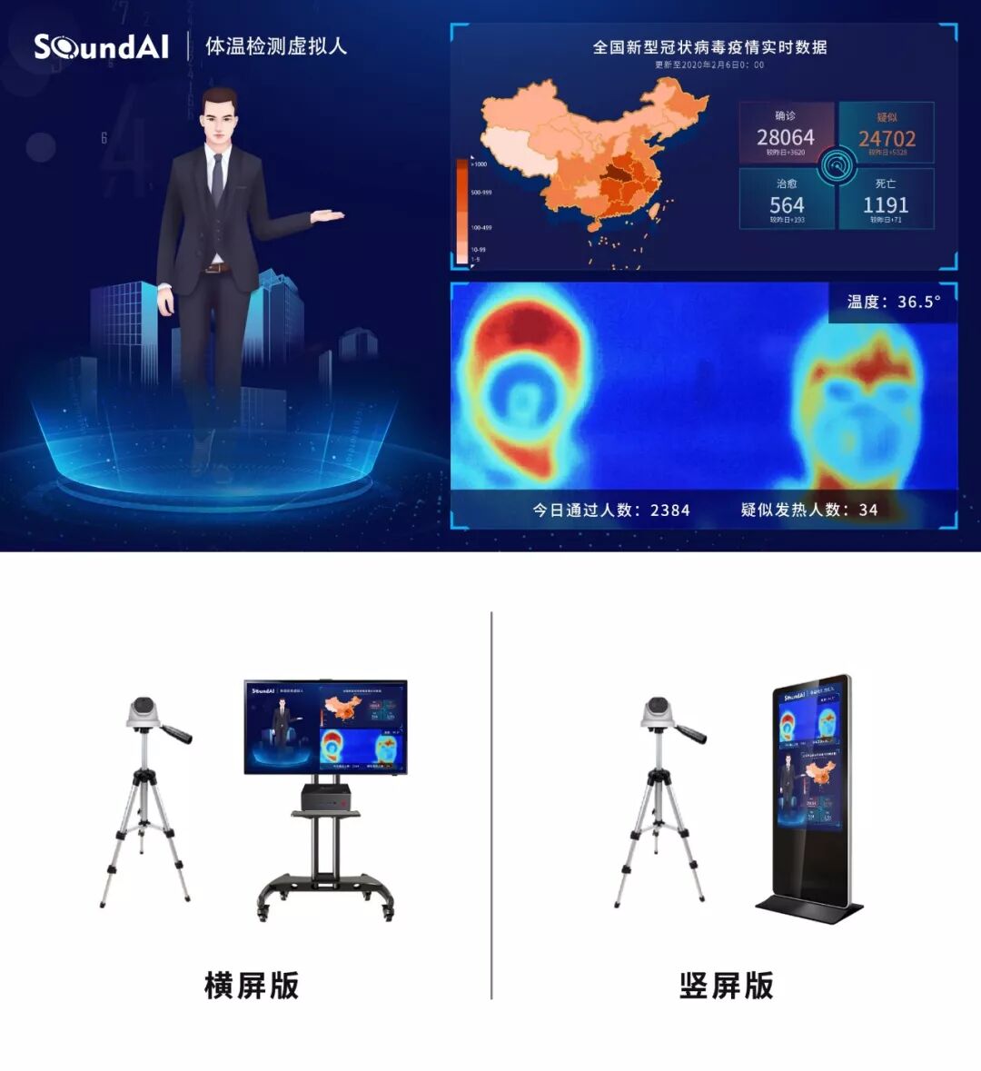 (声智AI数字人红外测温系统)